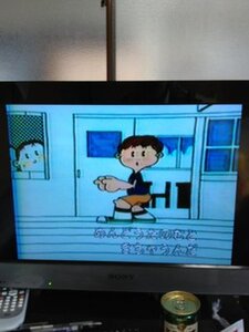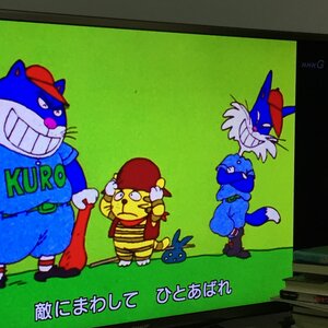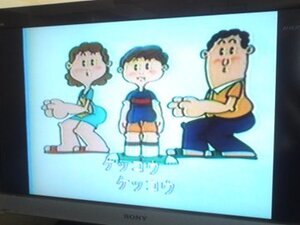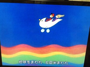 くじょうさんのお持ちの録画の「転校生は宇宙人」の曲名画面は、猫とクジラとアラレちゃんのがっちゃんみたいな妖精の絵でしょうか。「おじいちゃんていいな」「サボテンがにくい」の曲画面は魚を追いかける猫でした