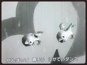 1989年1月の「子犬のプルー」「北風小僧の寒太郎」の回は、編み物をする女の子と動物の画面だった